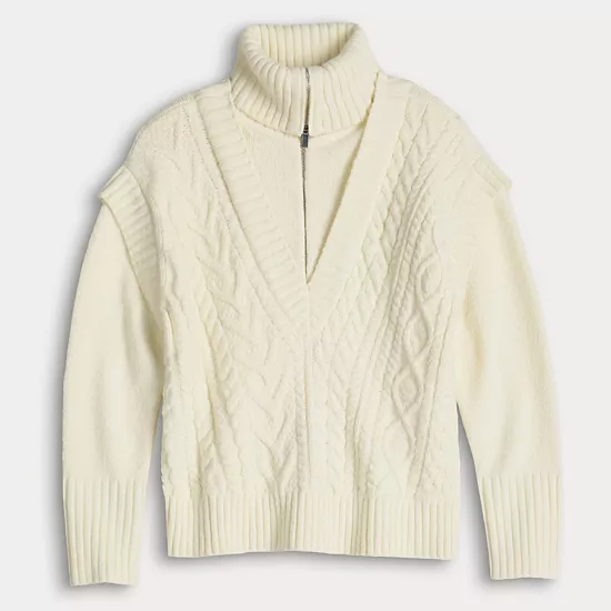 Cozy up in timeless style with this petite Simply Vera Vera Wang half-zip cable sweater. The zip neckline adds versatility, allowing you to wear it zipped up for extra coziness or open for a more casual look.