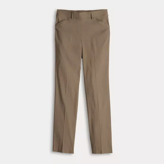 Elevate your everyday wardrobe with the effortlessly chic style of Simply Vera Vera Wang’s polished twill slim straight pants. Featuring a sleek slant pocket design, these versatile bottoms offer a flattering fit that seamlessly transitions from work to weekend, ensuring you look polished and feel comfortable all day long.