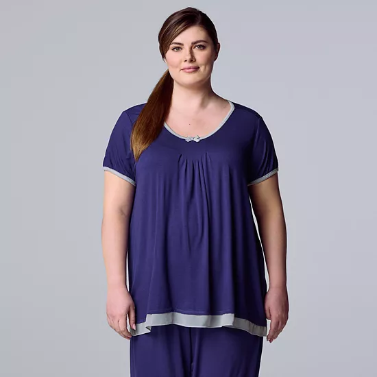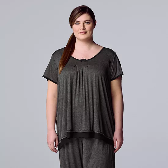 Banded chiffon accents give this women’s Simply Vera Vera Wang pajama top a luxurious look.