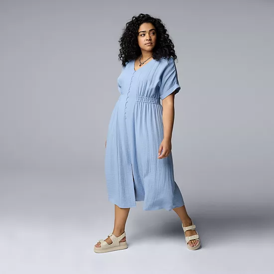 Elevate your wardrobe with the effortlessly chic design from Simply Vera Vera Wang, featuring a flattering smocked bodice that perfectly complements your silhouette.