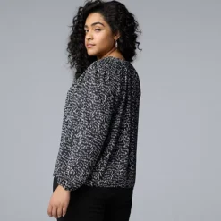 Plus Size Simply Vera Vera Wang Long Sleeve Smocked Neck Blouse