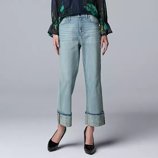 Elevate your denim game with these stylish high-rise ankle jeans that feature dazzling stones at the hem for that perfect touch of flair. Whether you’re headed to brunch or a casual evening out, Simply Vera Vera Wang has crafted a pair so chic you’ll wonder how you ever lived without them.