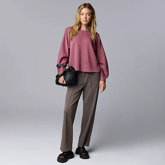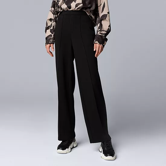 Elevate your everyday wardrobe with the effortlessly chic high rise wide leg pants from Simply Vera Vera Wang. Designed for comfort and versatility, these scuba knit pants offer a relaxed fit that drapes beautifully, making them perfect for everything from casual outings to polished office looks.