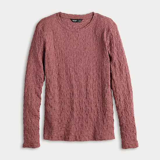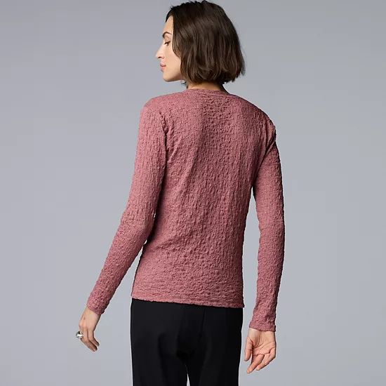 Elevate your everyday style with this long sleeve tee from Simply Vera Vera Wang, featuring unique pucker fabric that adds texture and flair to your look. Perfect for layering under jackets or dressing down with your favorite jeans, this versatile piece is designed for effortless chic and comfort.