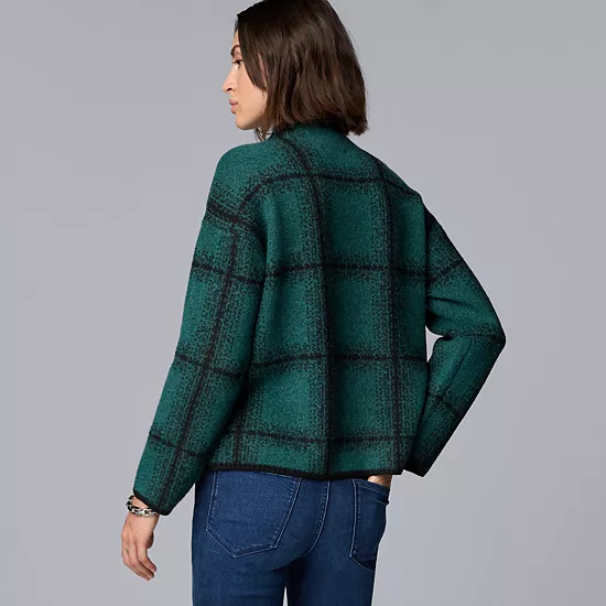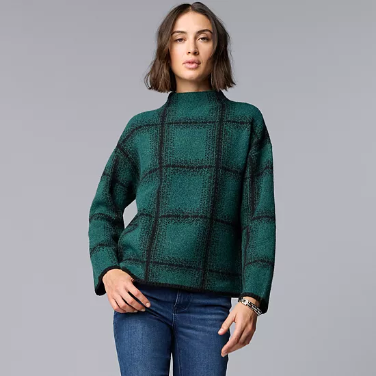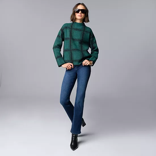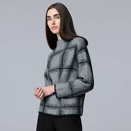 Elevate your wardrobe with the effortlessly chic style of Simply Vera Vera Wang. This mock neck intarsia sweater is perfect for layering or wearing solo, easily transitioning from casual outings to cozy nights in, making it a versatile addition to any women’s collection.