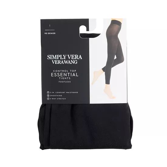Slip into these women’s Simply Vera Vera Wang opaque 90D footless control top tights to achieve a sleeker physique.