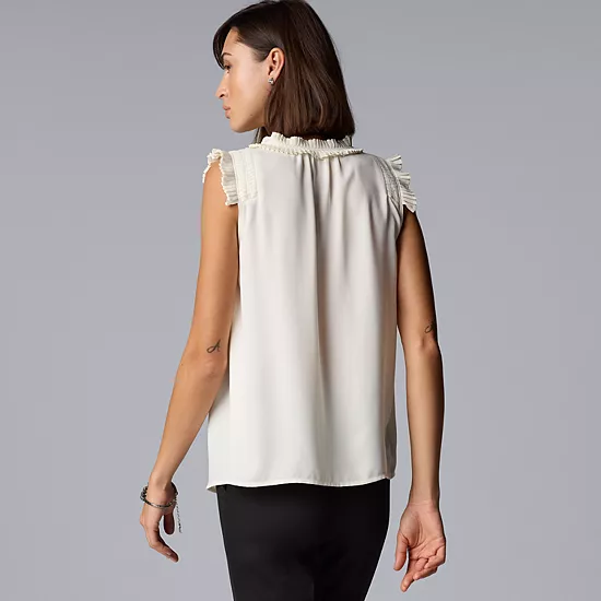 Look your best with this women’s Simply Vera Vera Wang pleated neck top.