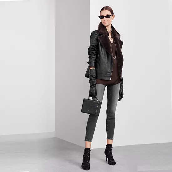 - Slim cut from hip to hem