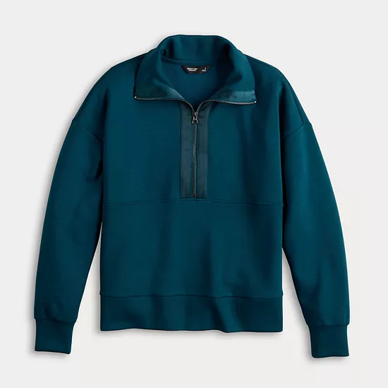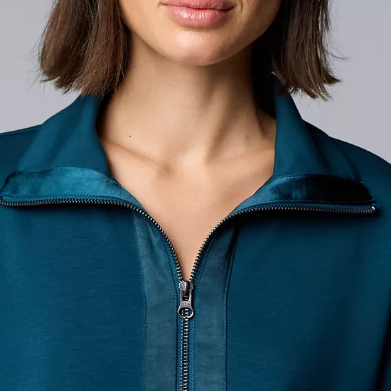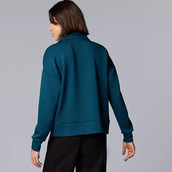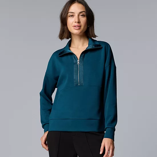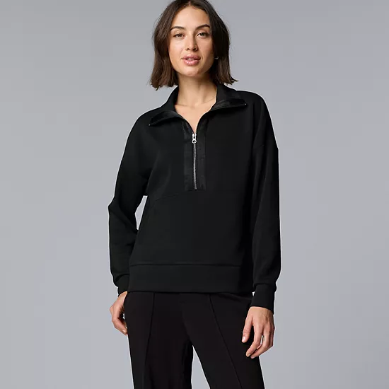 Elevate your casual wear with the effortlessly stylish half zip pullover from Simply Vera Vera Wang. Featuring a chic satin trim and a relaxed fit, this versatile piece is perfect for layering over your favorite tops, making it a go-to choice for laid-back days or adventurous outings.