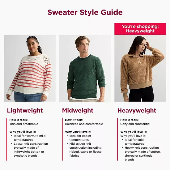 - Heavyweight sweater: Seriously cozy and crafted for comfort with added structure and weight that’s perfect for colder days