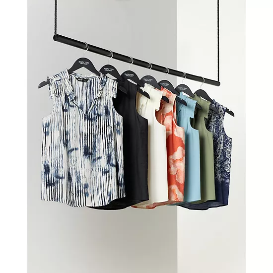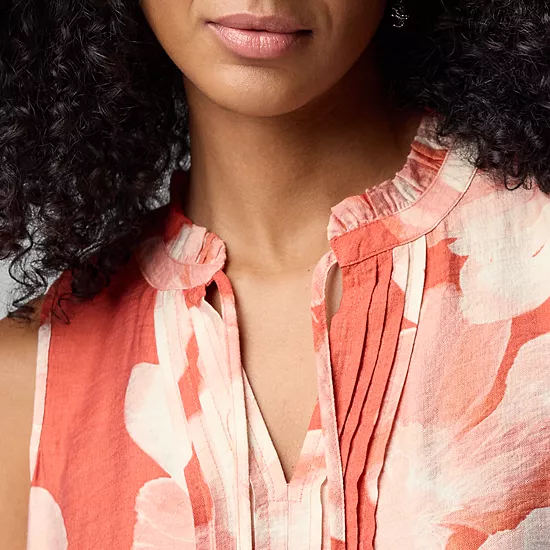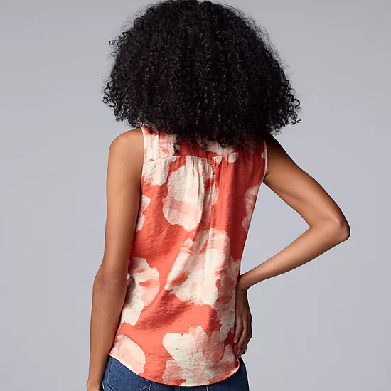 Update your wardrobe with this women’s Simply Vera Vera Wang tie-front pintuck sleeveless shell top.